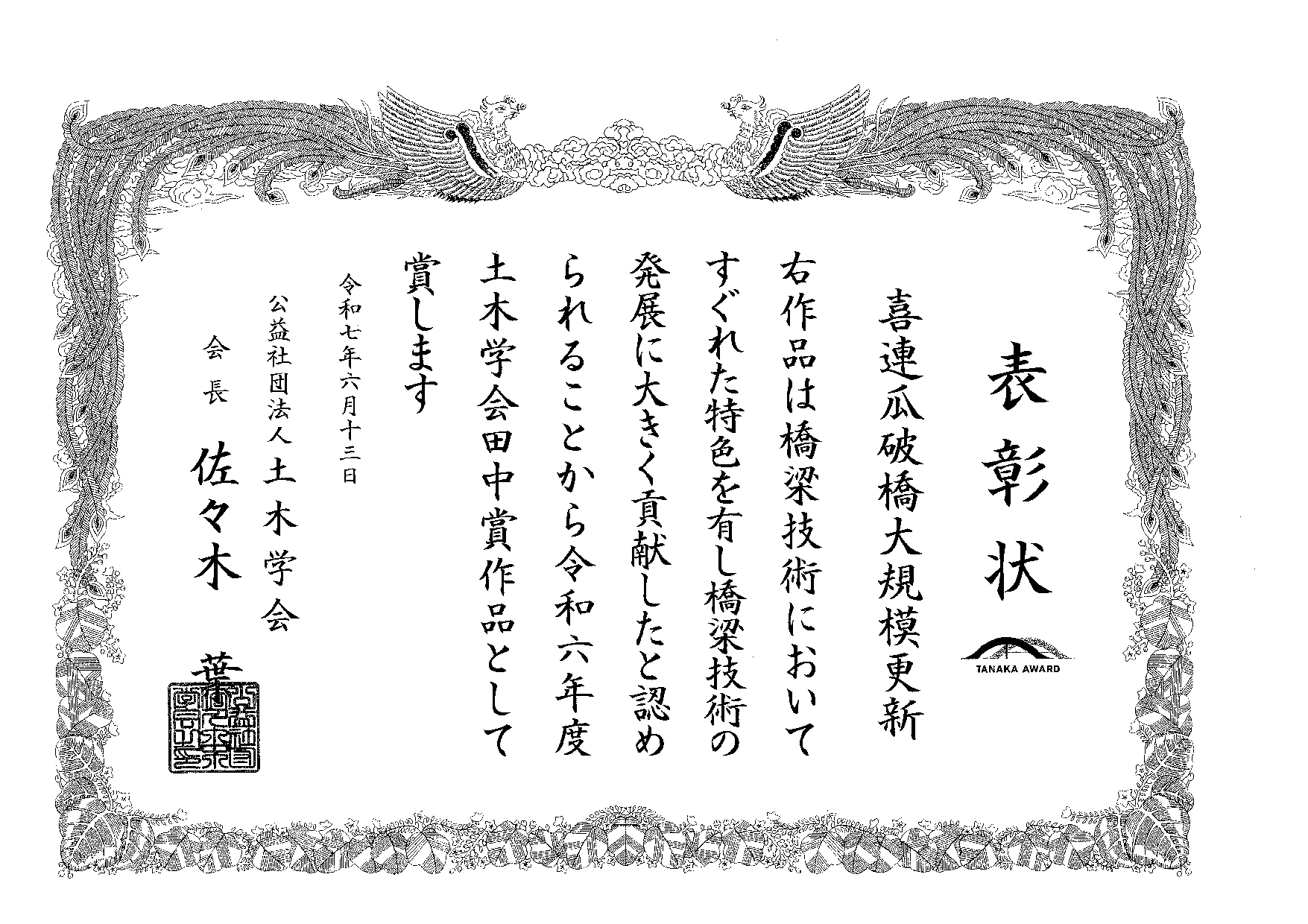HOME > ●カテゴリタイトル● > 令和6年度 土木学会田中賞の受賞について