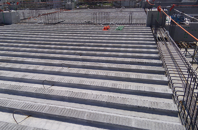 FR版は、マンションやビルの床部材で、工場製作時および現場施工時にも木製型枠を使用しないエコロジー製品です。当社固有の技術として広く長く採用されています。
