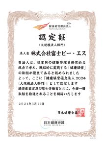 当社の健康経営に関する取り組みが評価され、2024年3月11日付で「健康経営優良法人2024(大規模法人部門)」に認定されました。