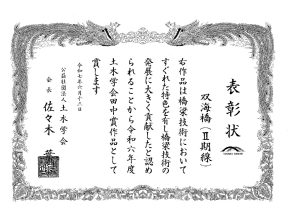 当社を含むJVが施工した双海橋(Ⅱ期線)および喜連瓜破橋大規模更新工事が、令和6年度 土木学会田中賞(作品部門)を受賞しました。
