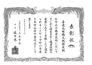 同賞は1920(大正9)年に「土木賞」として創設され、100余年の伝統に基づく権威ある表彰制度です。