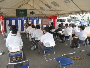 来賓として、いわき市、公益社団法人いわき産学官ネットワーク協会、福島工業高等専門学校、常磐開発株式会社の方々にご出席いただき、当社からは代表取締役社長 堤忠彦をはじめ、多数の役職員が参加し神事を行い、施設の完成を祝いました。