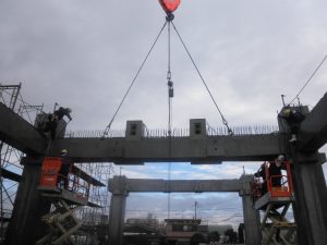 | 施工範囲 | プレキャストプレストレス造 免震構造 (柱・梁・免震ブロック・PC床板)組立、圧着 |