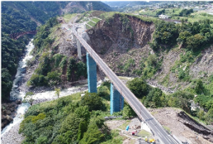 | 工事概要 | 2016年4月に発生した熊本地震の災害復旧工事で、応急復旧工事を2017年8月に完了させ、 阿蘇長陽大橋、戸下大橋の2橋が位置する長陽大橋ルート(村道栃の木立野線)を 同月27日に開通させた。長陽大橋は、支承・伸縮取替、上下部炭素繊維シート等による 補修・補強、P3橋脚充填、戸下大橋は、斜面崩落により損傷した2径間の主桁取替工事、 全線の付属物取替工事を行った。夜間工事や作業日、施工時間の調整等を行い、 他業者とも協力し施工することで早期開通に努めた。 |