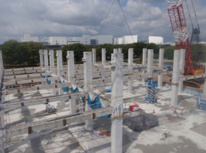 - プレキャスト部材の圧着接合工法であるため、躯体施工期間の短期化が可能です。
