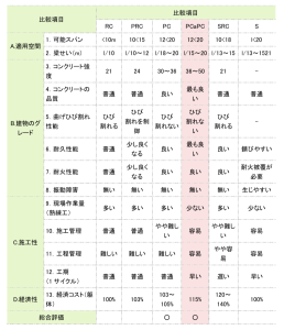 構造種別の評価一覧表(例.事務所 6 階建)